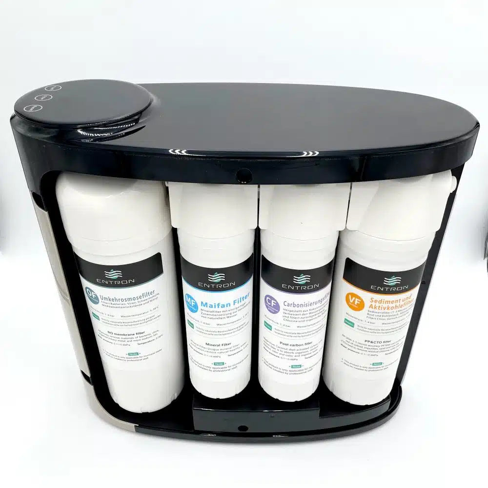 Die ENTRON F-Serie 500 GPD ist ein modernes Premium-Umkehrosmose-System mit integrierter Mineralisierung und innovativer Quickchange-Technik. Es liefert dir reines, weiches, mineralisiertes Trinkwasser – frei von Schadstoffen, Medikamentenrückständen, Mikroplastik, Hormonen und Schwermetallen.