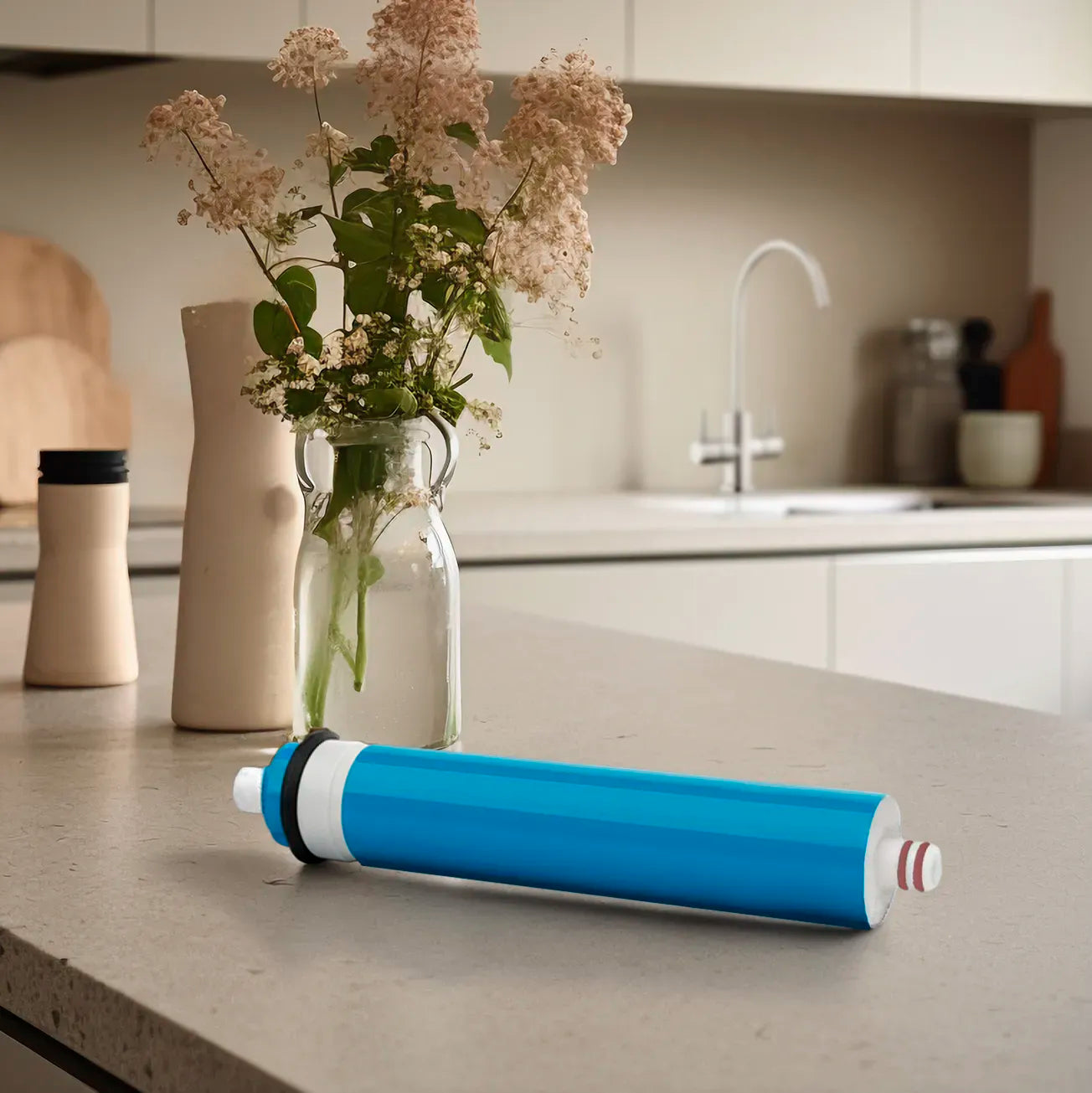 Steigere die Filterleistung deiner Anlage mit unserer 180 GPD RO-Membran. Ihre ultrafeine 0,0001 µm Trennschicht entfernt bis zu 99 % aller gelösten Stoffe – darunter Schwermetalle, Pestizide, Medikamentenrückstände und Mikroplastik. Das Ergebnis: maximal reines, geschmacksneutrales Trinkwasser bei spürbar höherer Durchflussrate.