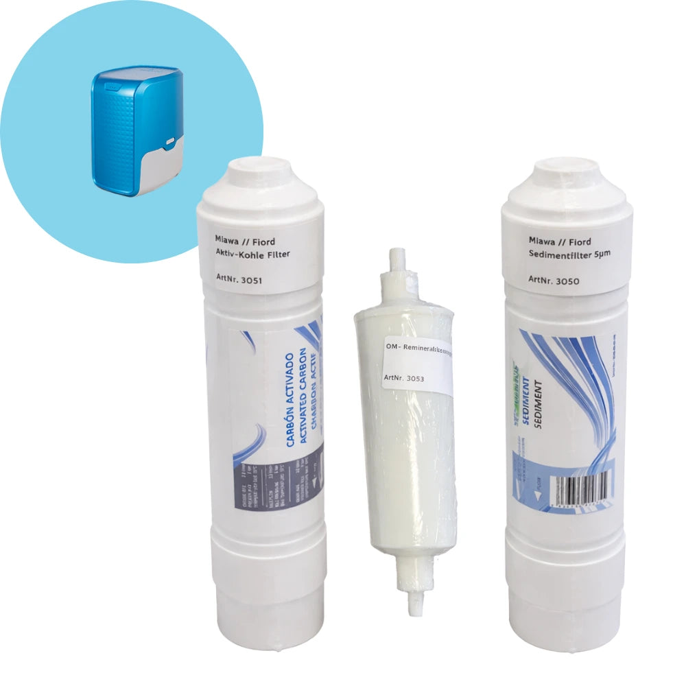 Das Ersatzfilterpaket für die Miawa Wasserfilteranlage sorgt für dauerhaft hohe Wasserqualität und eine zuverlässige Filtration im Alltag. Das Set besteht aus Sedimentfilter, Aktivkohlefilter und Remineralisierung und filtert effektiv Schwebstoffe, Schadstoffe sowie unerwünschte Rückstände aus dem Wasser – für ausgewogenes, frisches Trinkwasser aus deinem Miawa Wasserfilter.