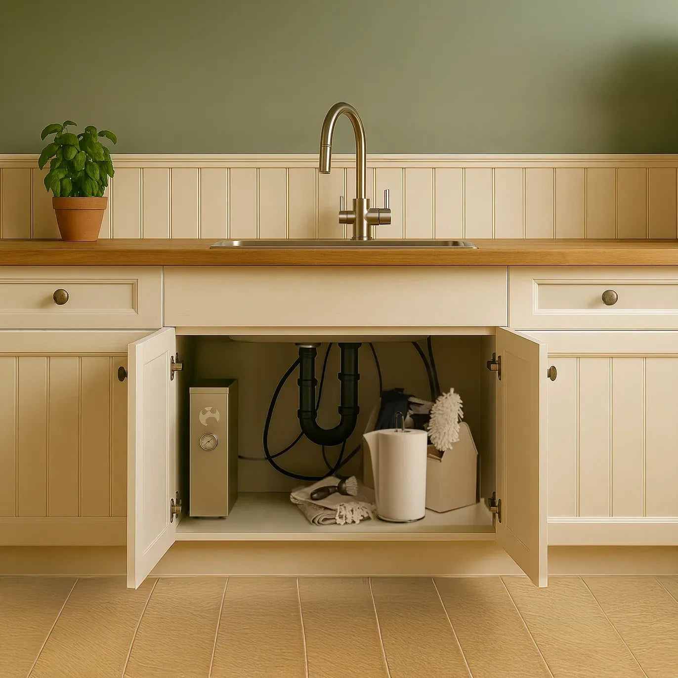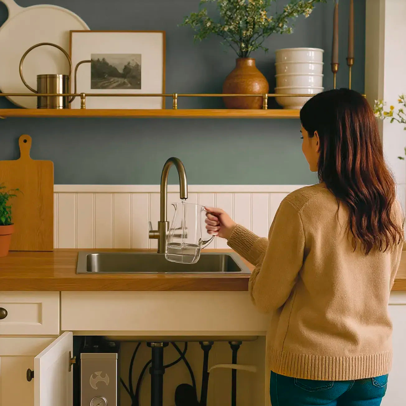 Der EVOfilter wird an einem beliebigen Wasseranschluss in deinem Zuhause installiert – zum Beispiel in der Küche, im Keller oder im Bad. Wichtig: Er wird nicht direkt an die Haupteingangsleitung des Hauses angeschlossen.