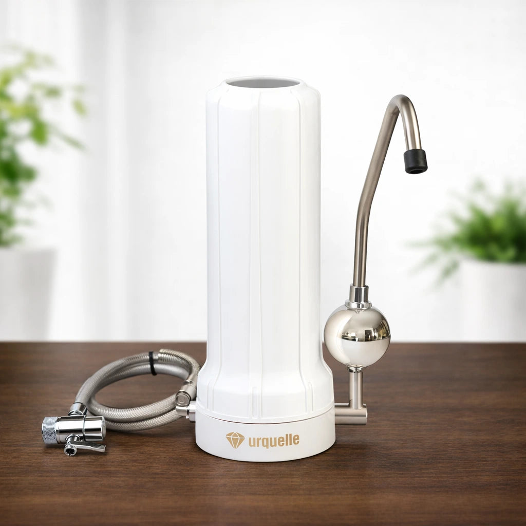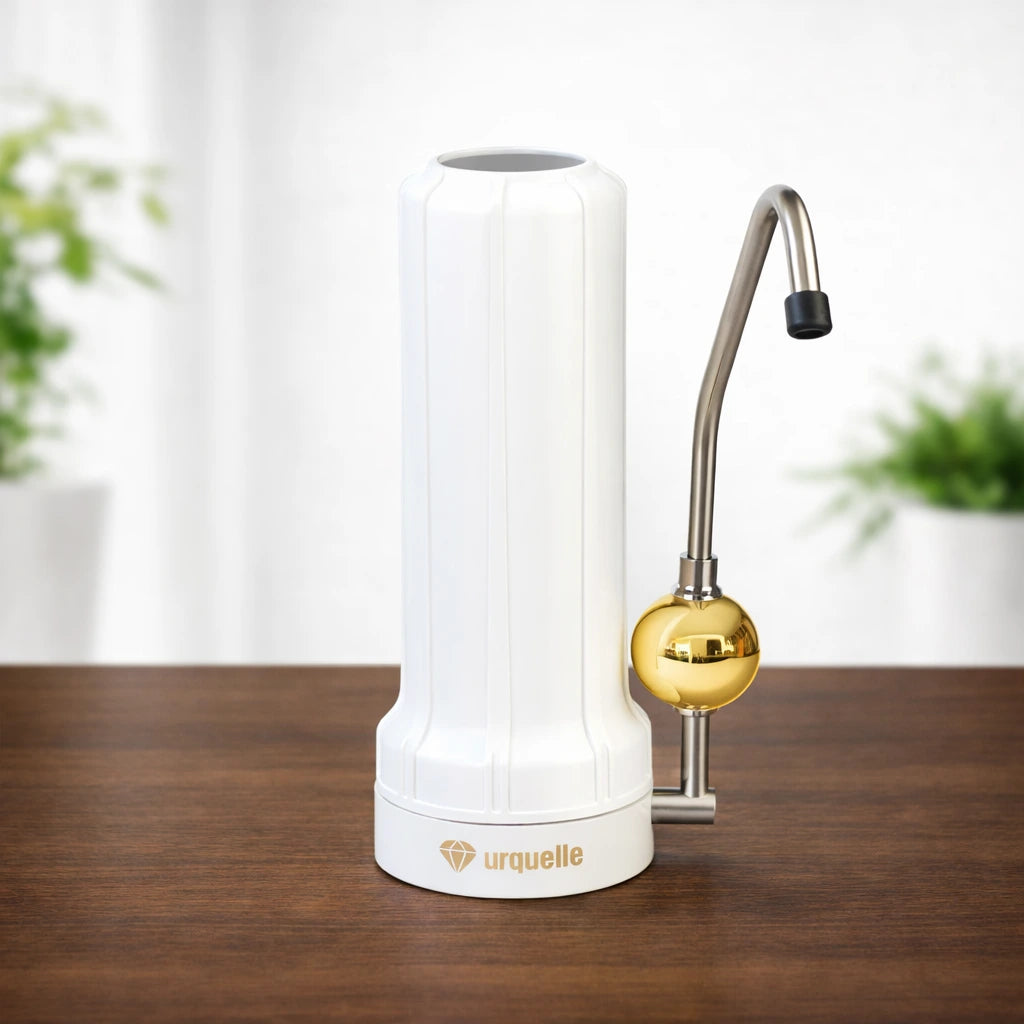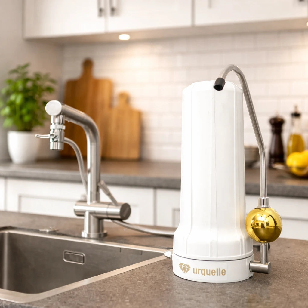 Der UrQuelle OPAL ist ein Auftischwasserfilter und wird direkt am vorhandenen Küchenwasserhahn installiert. Die Filterung erfolgt als Point-of-Use-Lösung genau dort, wo das Trinkwasser entnommen wird.